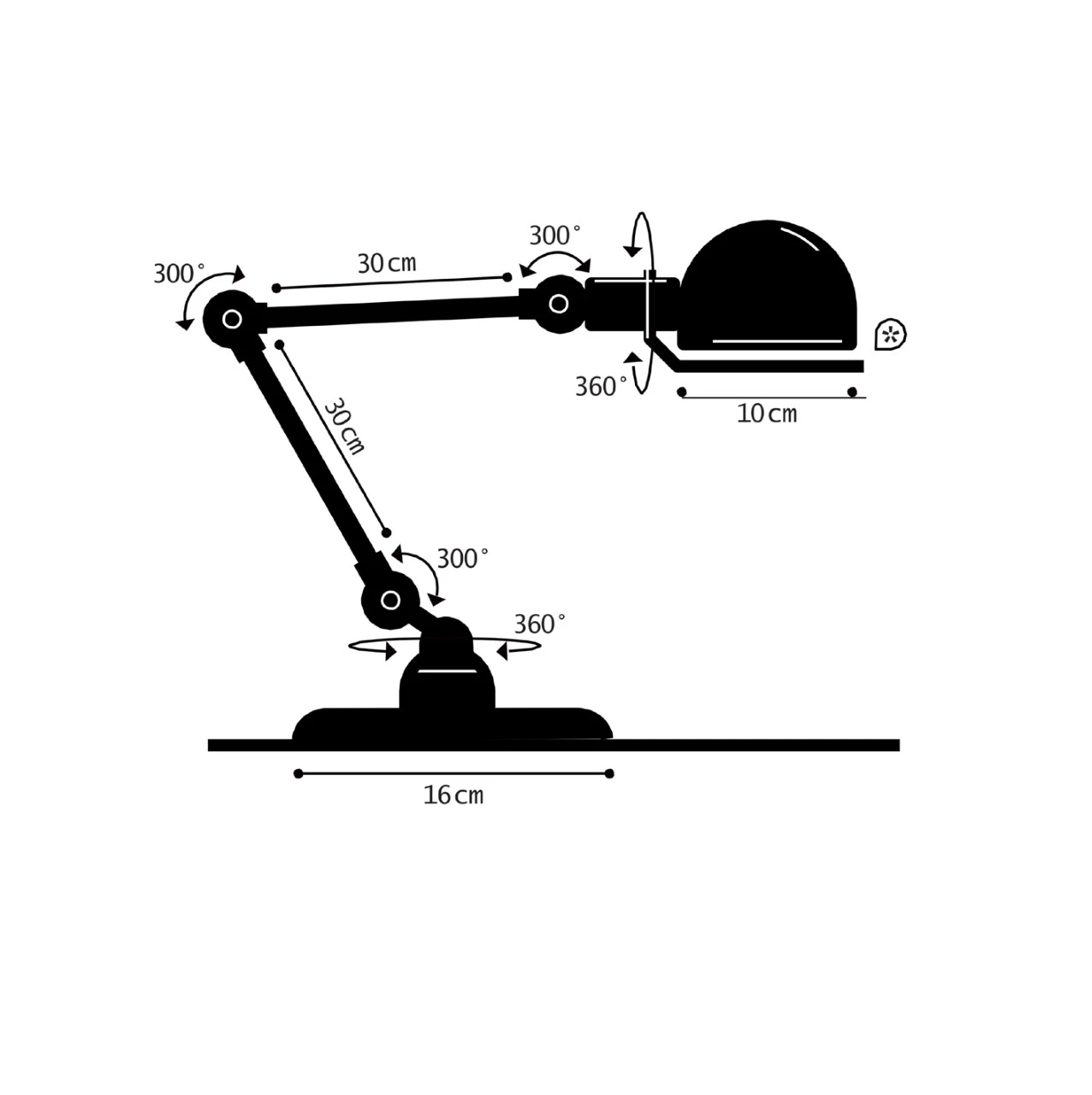 Strömbrytare/switch är monterad på lampfoten