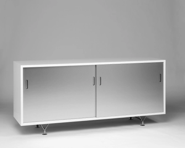 Förvaringsskåp Mi 805 i vitt hårdlaminat och aluminiumdörrar