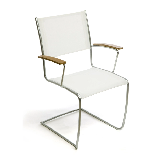 2 st stapelbara karmstolar SPRING i teak eller tyg med elförzinkat stålstativ