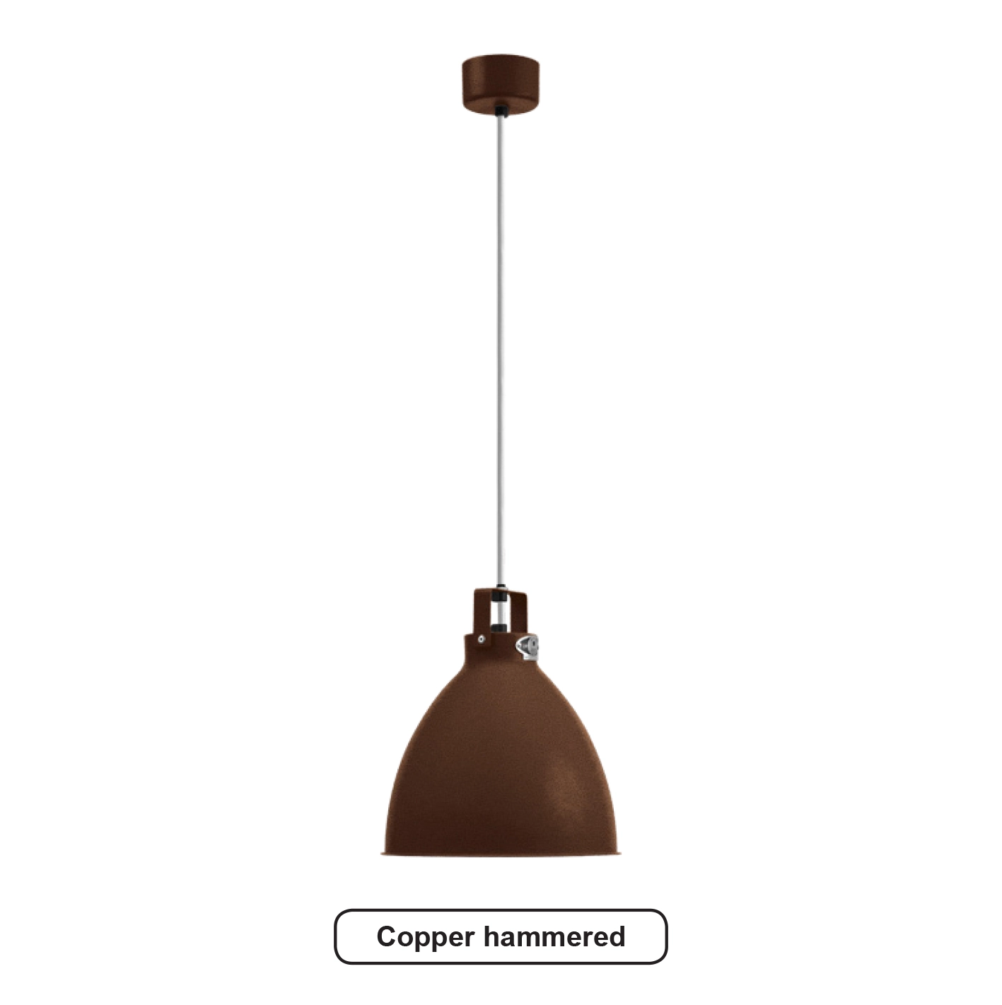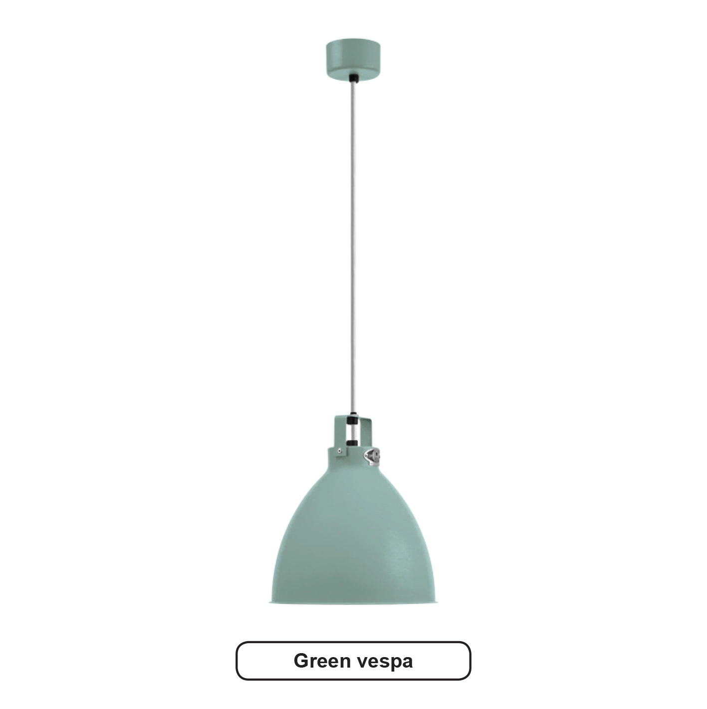 Skärm och alla detaljer i blank eller matt lackerad metall (skärm insida i vitlack)