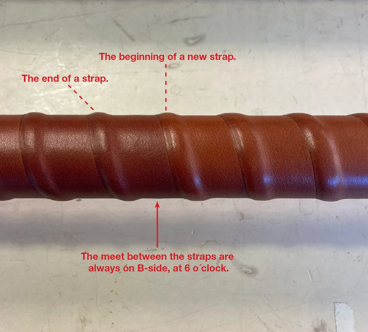 på läderremsorna. Varje remsa är ca 2,5 meter lång,