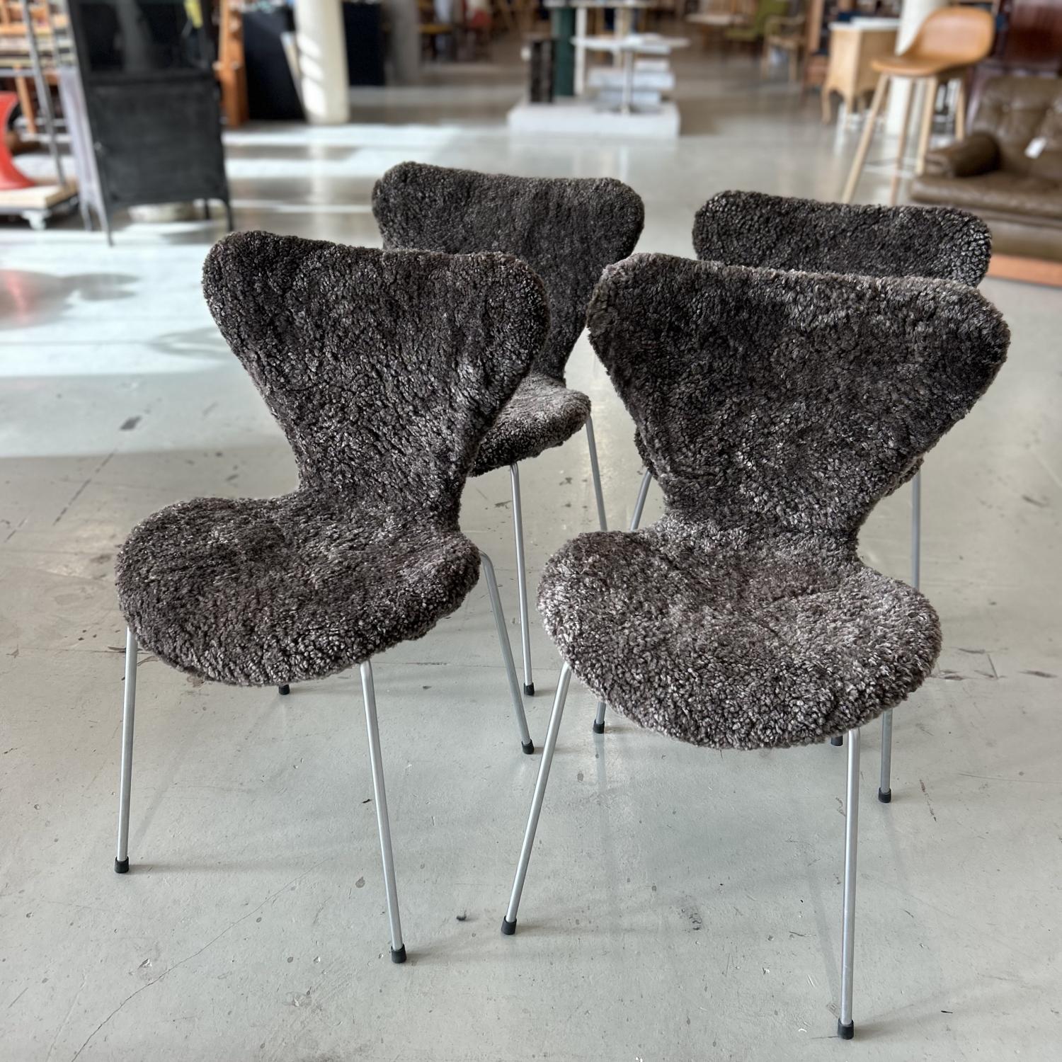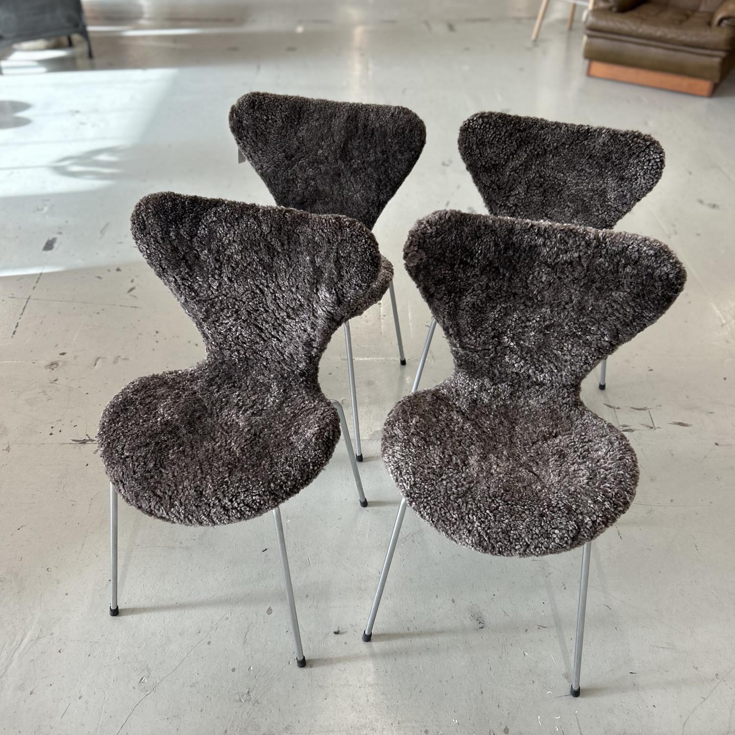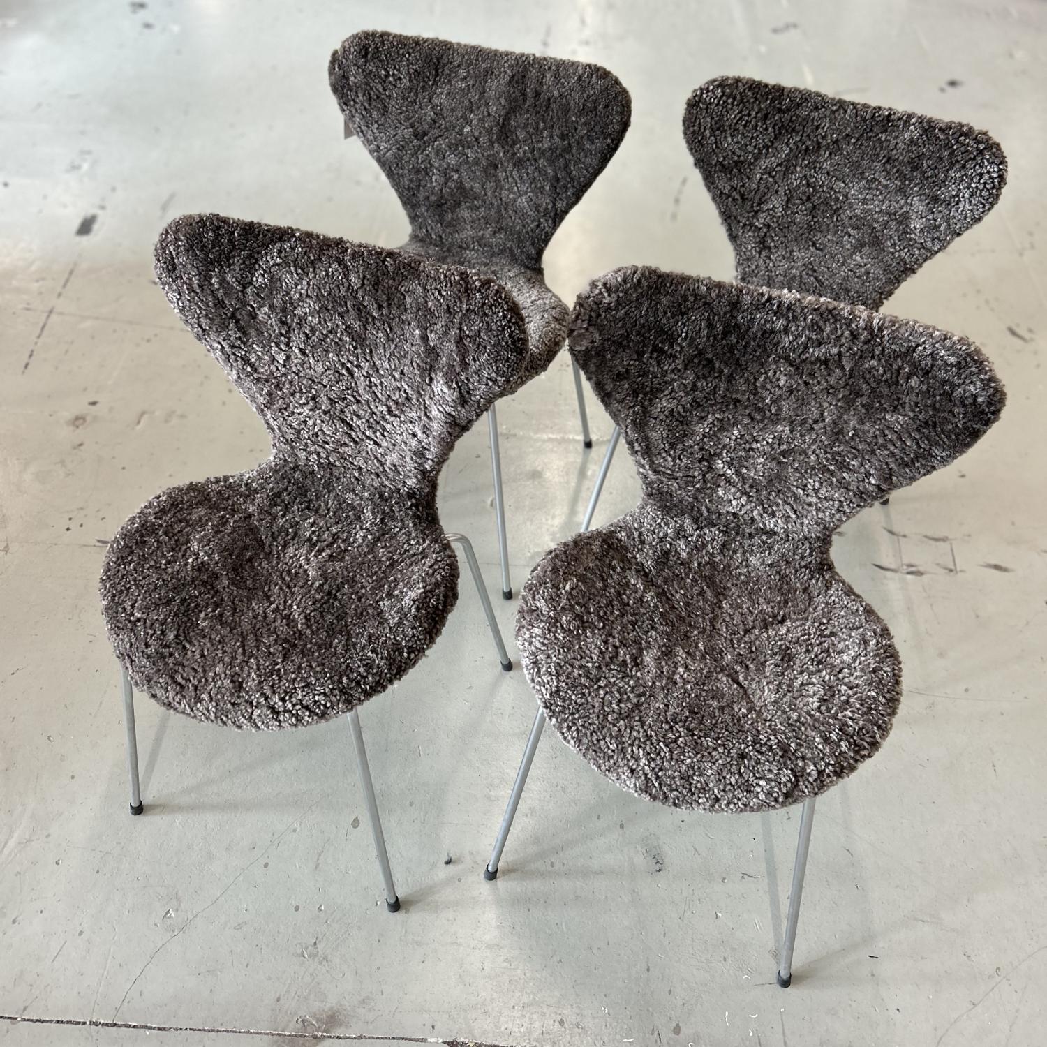 Ett set med 4 st Sjuanstolar med fårskinn Sahara