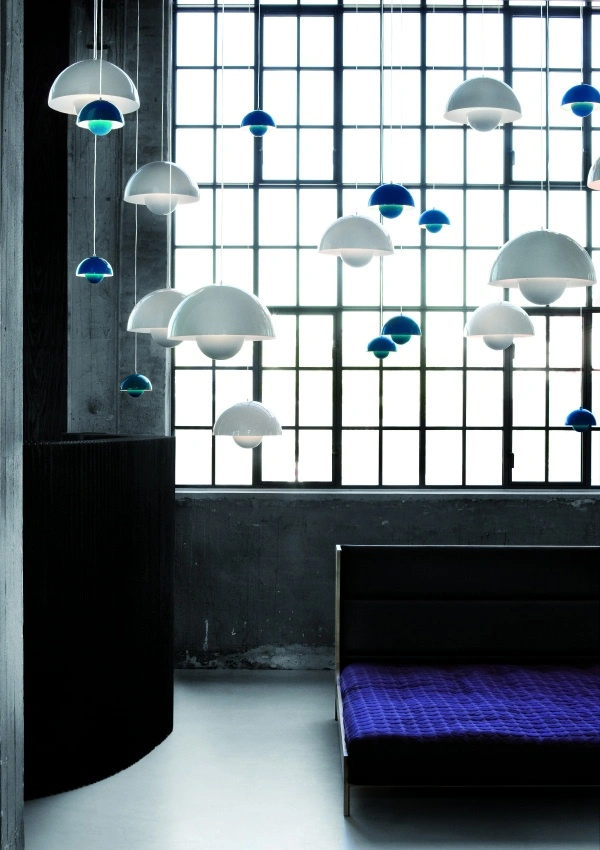 belysning och möbler designade av Verner Panton, Arne Jacobsen