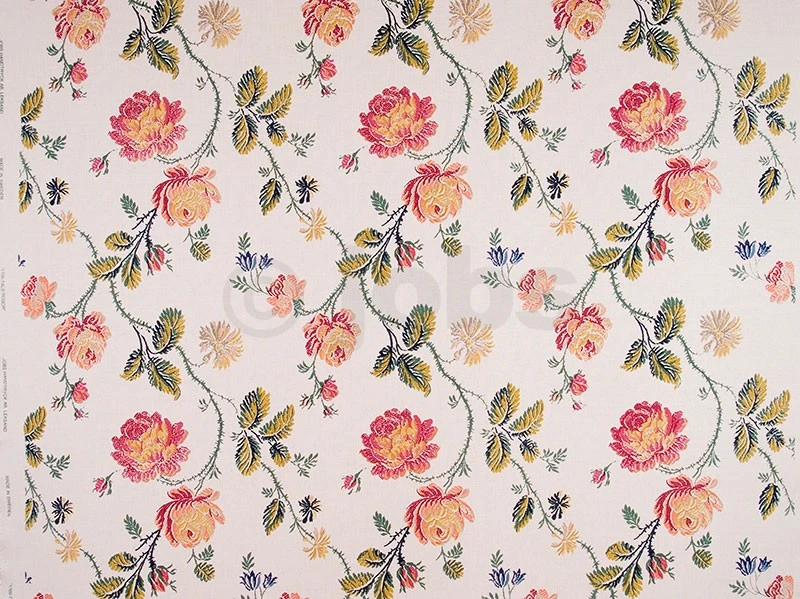 Handtryckt tyg 1700-TALS ROSOR