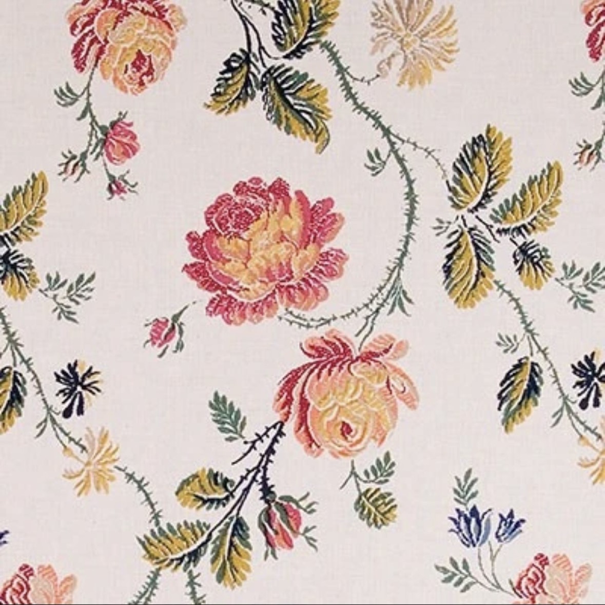 Handtryckt tyg 1700-TALS ROSOR