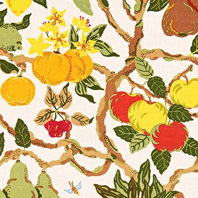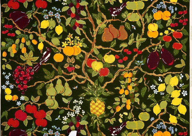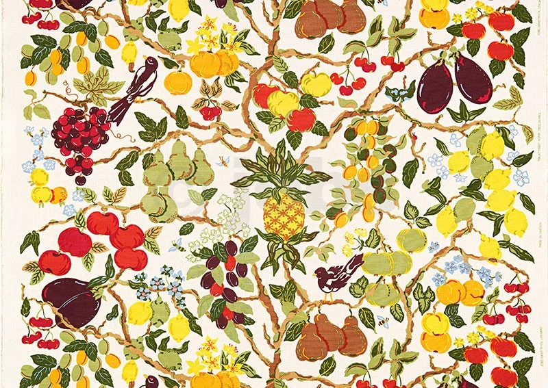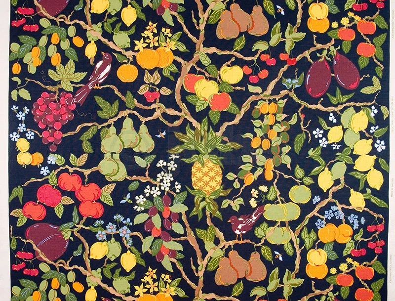 Handtryckt tyg FRUKTTRÄD