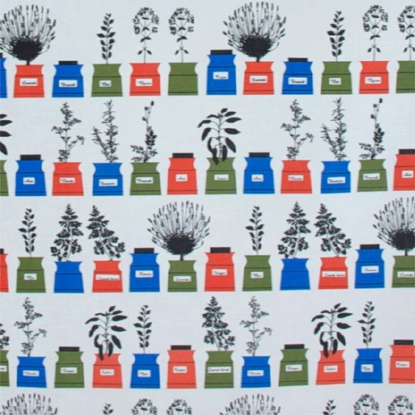 Tryckt textil i 55 % lin och 45 % bomull