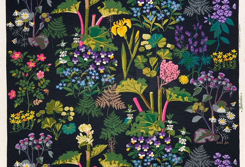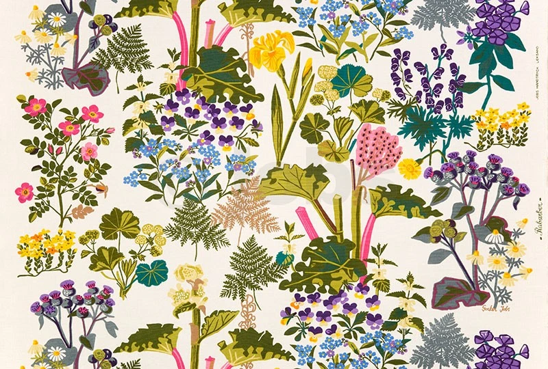 Handtryckt tyg RABARBER