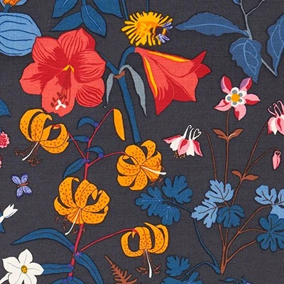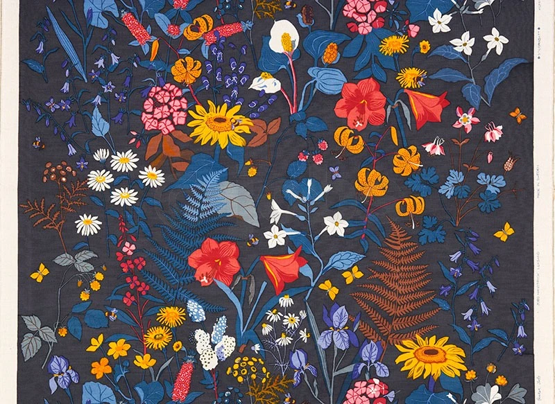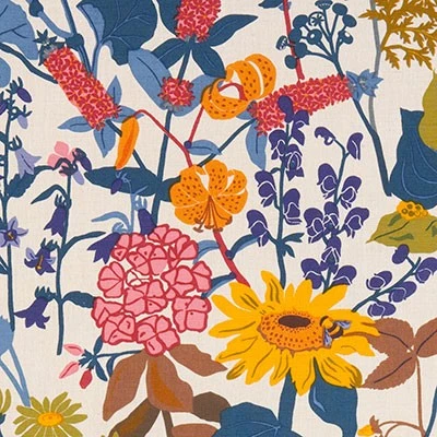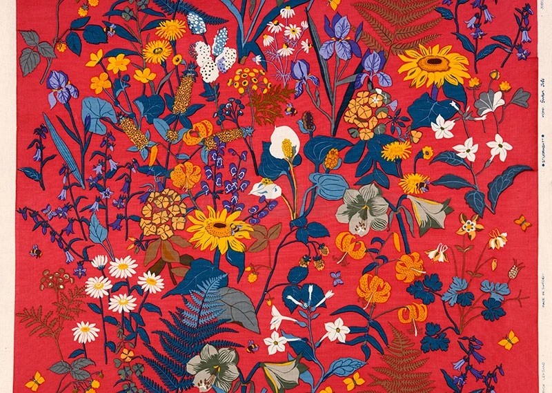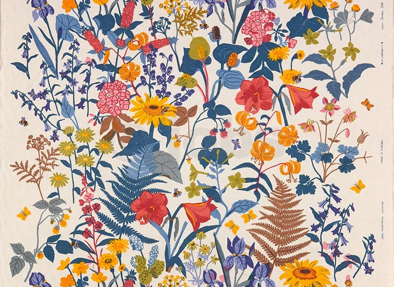 Handtryckt textil i halvlinne (60% lin, 37% bomull och 3% polyamid)