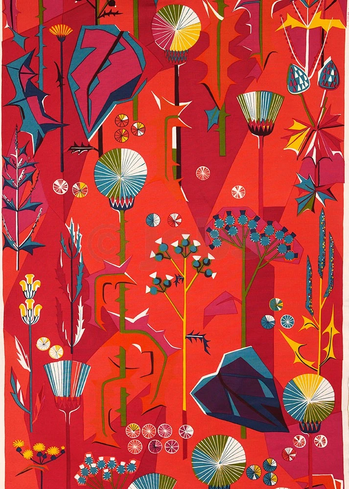 Handtryckt tyg TISTLAR