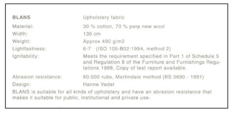 Vävd textil i 70% ren ny ull och 30% bomull