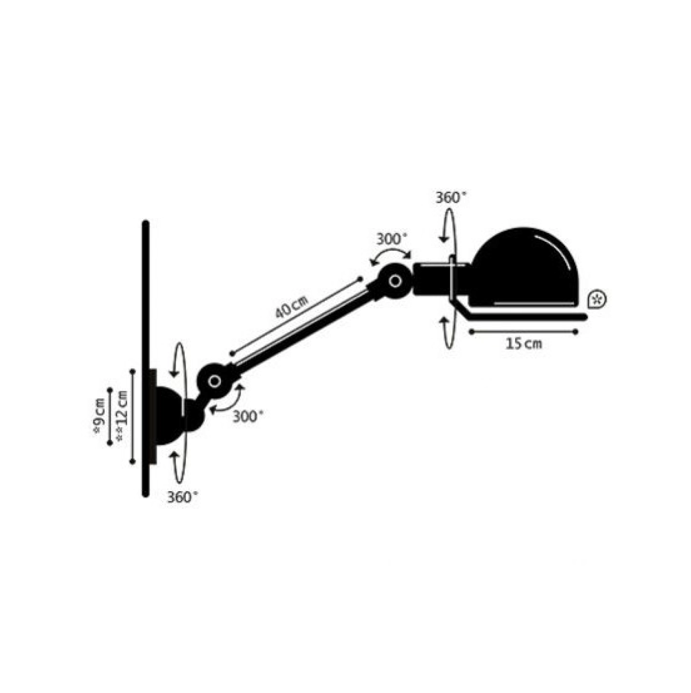 Strömbrytare/switch är monterad på väggfästet